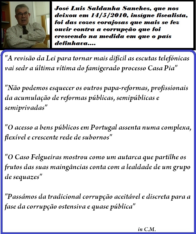 Em entrevista a um diário, Fernando Jorge, Presidente do Sindicato dos Funcionários Judiciais, queixa-se e lamenta a actual situação da Justiça. Nada que alguns seus colegas de ofício, que fazem o favor de ser meus amigos, me não venham dizendo, em sentidos desabafos. Por entre alguma estupefacção pela permissividade de alguns juízes, criticam, com aspereza e desencanto, a pressão e a contaminação sistémica que a Política e os seus braços executivos, está a exercer no grande edifício nacional que é a Justiça. Fazem sentir a sua frustração e impotência perante a exiguidade dos meios postos à sua disposição para um cabal desempenho das suas missões e da falta de respostas ministeriais para a resolução dos problemas com que se vão deparando, quer para o normal exercício das suas funções, como para poderem estar ao nível e dar resposta a novas situações com que se vão deparando. E, entre sussurros, falam de laxismo, promiscuidades, desorientação profissional...falta de rumos definidos.